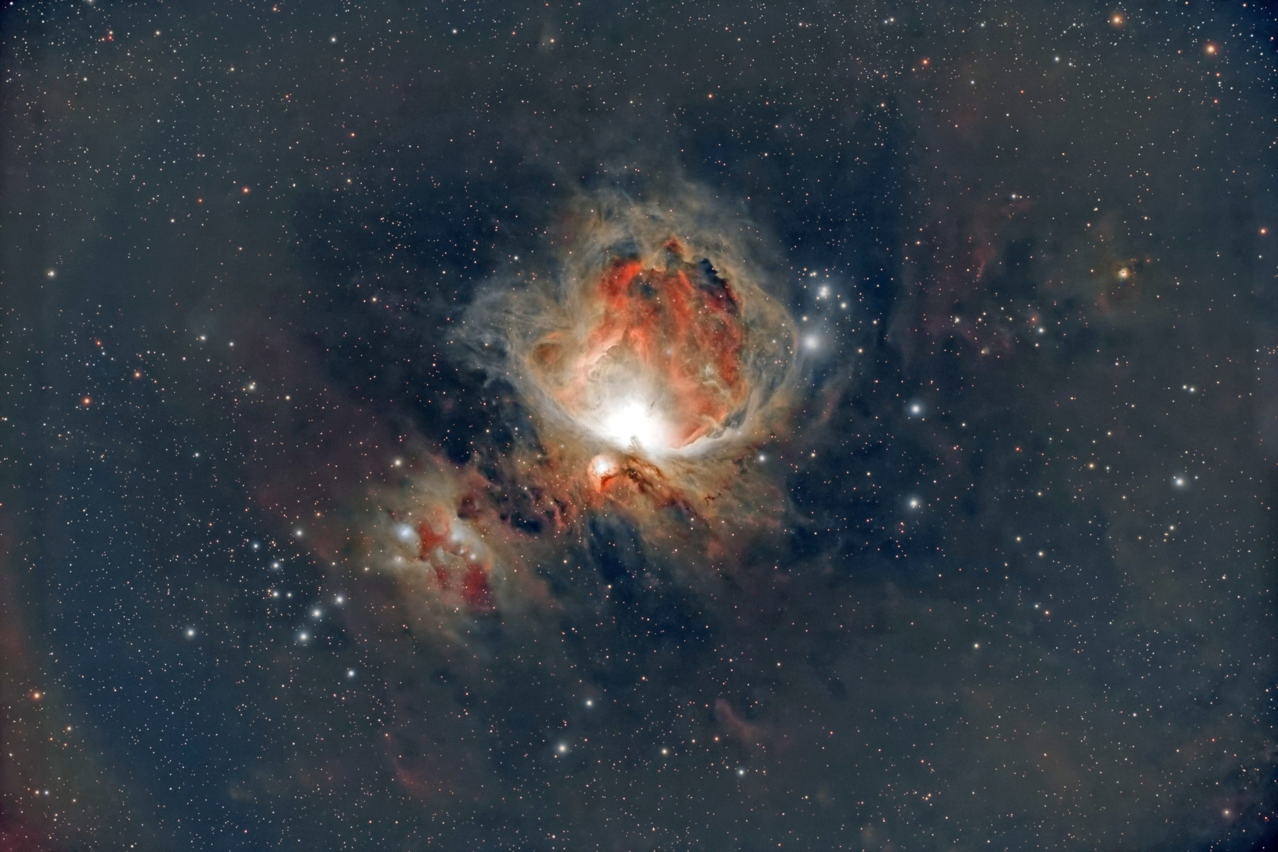 Equipo utilizado: telescopio Askar 65phq Quintuplet con reductor x0,75, cámara ZWO ASI 294MC Pro Color, todo sobre montura HEQ5 Pro Goto. Filtros SvBonny SV220 de 7 nm en `{`H II`}` y `{`O III`}`. Exposición total de 10h en capturas de 5 min (120 imágenes). Tomas de calibración: dark, flat y darkflat.