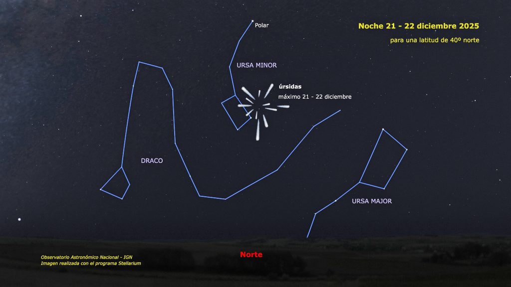 Los días próximos a la Navidad nos regalan una segunda lluvia de estrellas, las Úrsidas, que son visibles entre los días 17 y 26; los meteoros parecen provenir de la Osa Menor, de ahí su nombre. La máxima actividad se espera la noche del 21 al 22 de diciembre, aunque la noche siguiente también podría ser favorable para observar estos meteoros. La ausencia de Luna este año no nos impedirá disfrutar de las Úrsidas. El mejor momento para observarlas es durante las últimas horas de la noche, poco antes de comenzar el alba, ya que es cuando el radiante, cercano a la estrella Kochab, se sitúa más alto en el cielo. Además, como es habitual, cuanto más nos alejemos de los núcleos urbanos y de la contaminación lumínica, podremos apreciar un mayor número de estrellas fugaces.